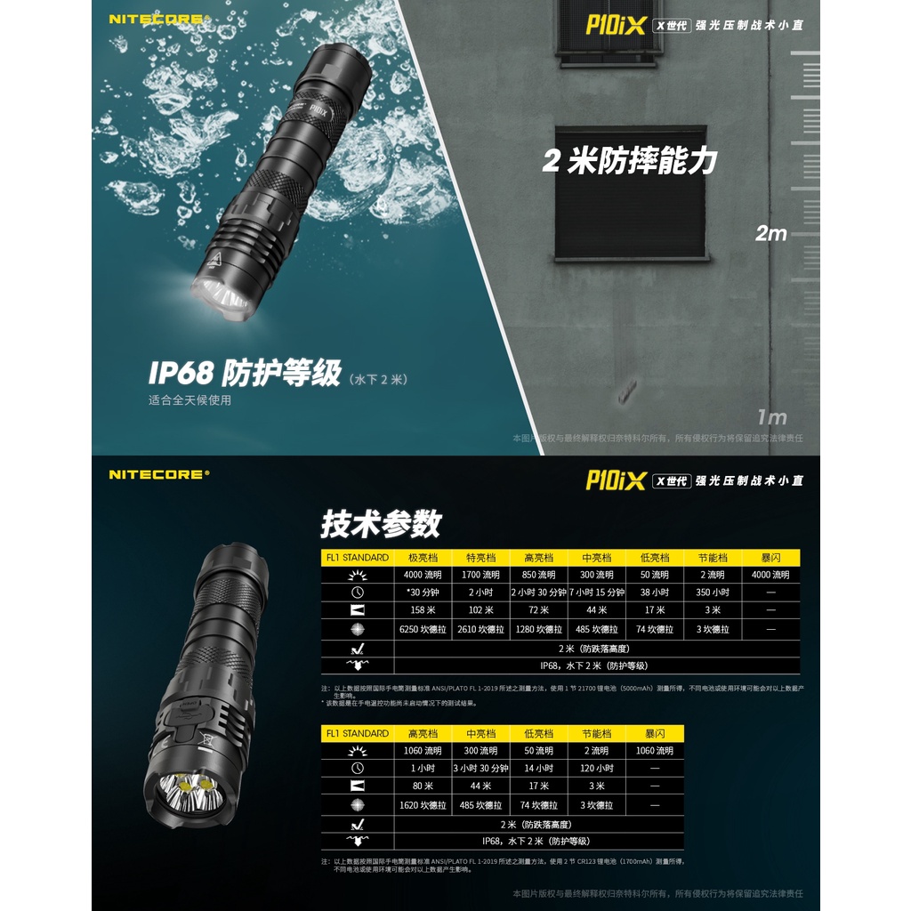 【錸特光電】NITECORE P10iX 4000流明 附快拔套 戰術小直 強光LED手電筒 警用 勤務 21700電池
