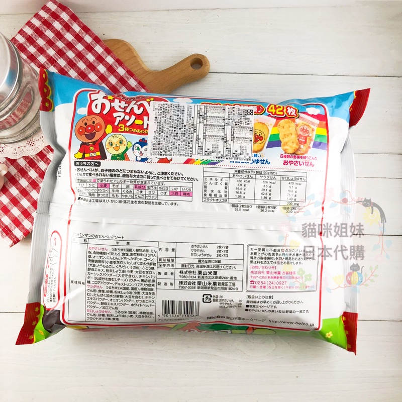 【貓咪姐妹 】日本Befco 栗山 麵包超人米果 星星仙貝 綜合米果 日本米果 野菜米果 醬油米果 沙拉鹽味米果