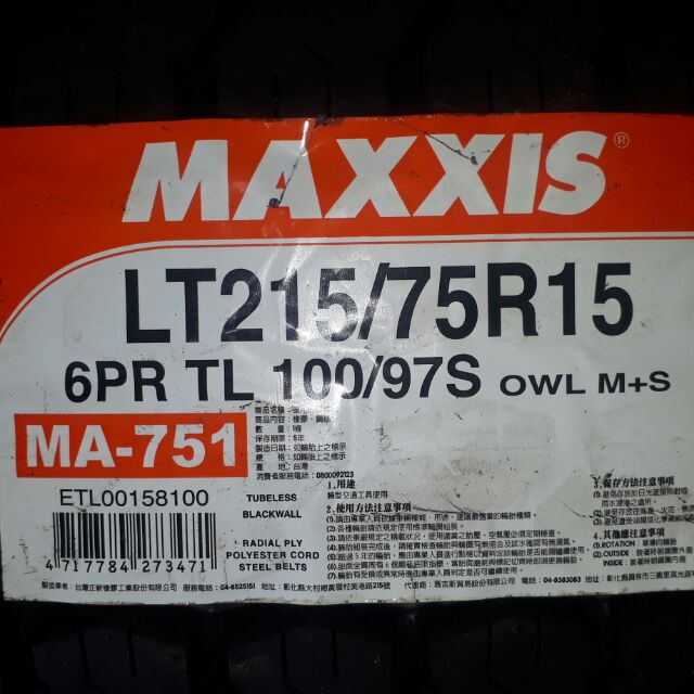 彰化員林 正新輪胎 瑪吉斯 ma751 4*4 吉普車 215 75 15 實體店面安裝