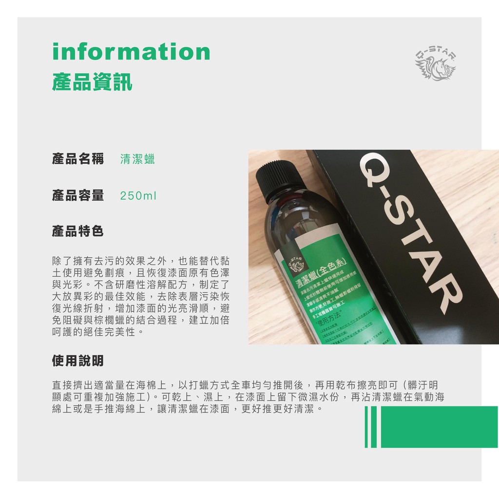 Q-STAR 汽車美容 清潔蠟250ml 全車系 汽車清潔 清潔蠟 拋光 黑底去汙 去汙垢 去髒垢 去蠟垢