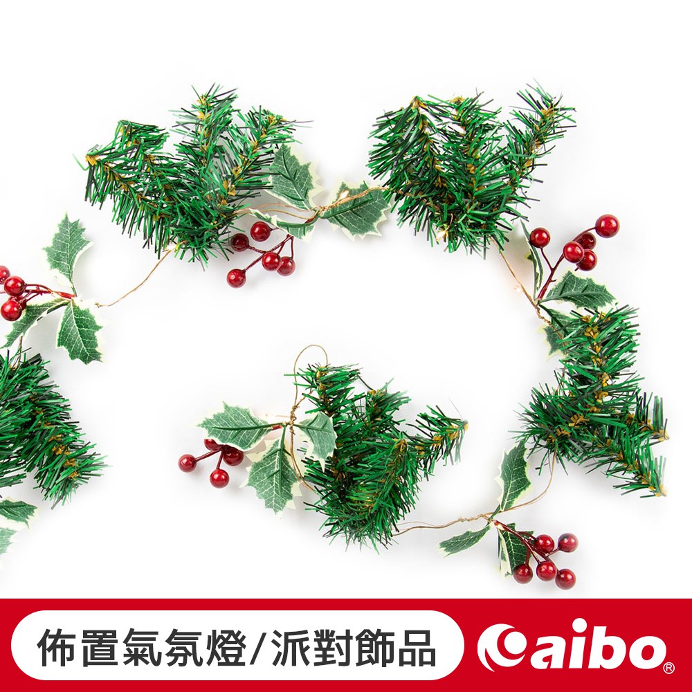 聖誕松針紅果子LED燈串 暖白光 2米20燈【現貨】電池供電 裝飾燈 聖誕燈 聖誕禮物 交換禮物 聖誕佈置 仿真裝飾