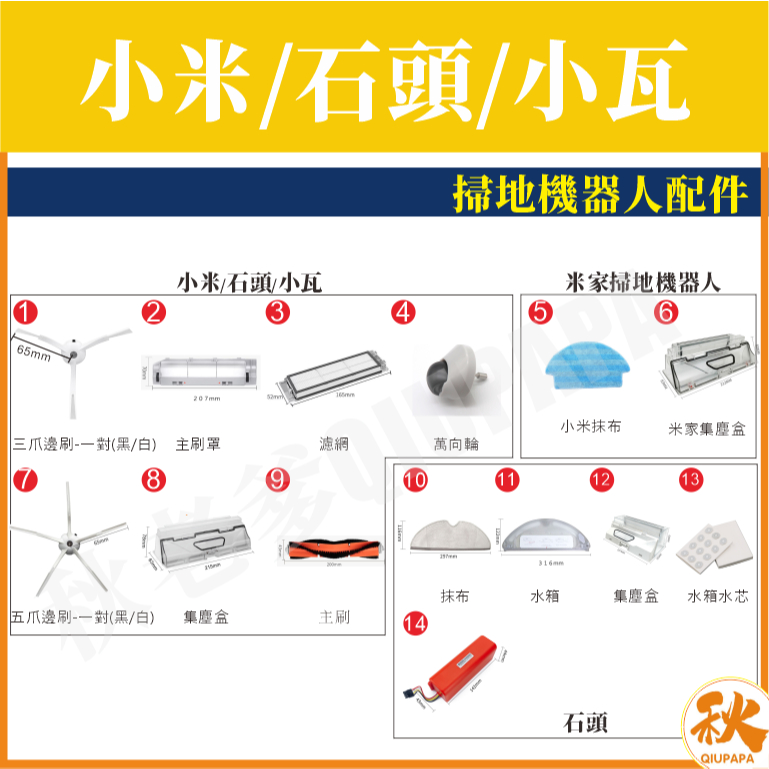 掃地機器人配件 適用小米/石頭/小瓦 濾網 主刷 邊刷 副廠 可水洗 耗材