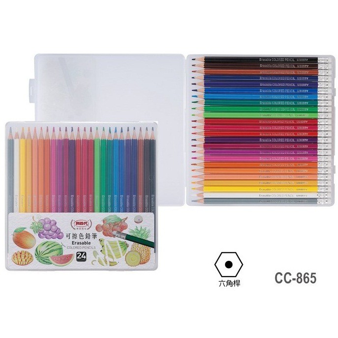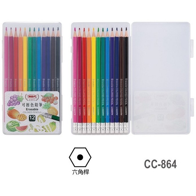 可擦性色鉛筆 可擦拭 12色/24色 【LIBERTY 利百代 CC-864/865】【康庭文具】