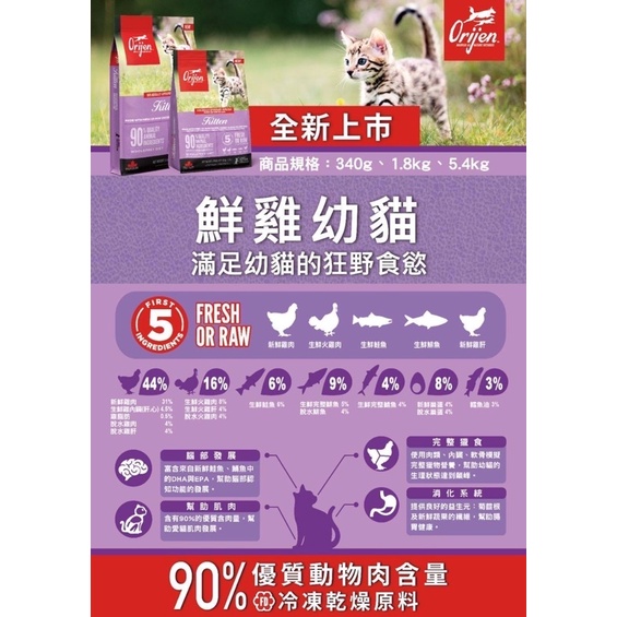 ✨原廠公司貨🐾拿鐵貓花花🐾 Orijen 歐睿健 全齡貓無穀配方 鮮雞愛貓 六種鮮魚 室內貓 貓飼料