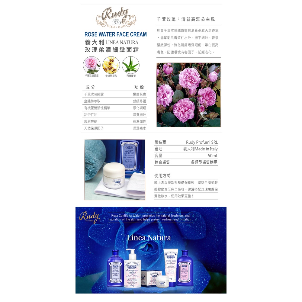 2款任選1件義大利Rudy【歐都賣】玫瑰柔潤細緻面霜50ml/保濕化妝水250ml 嫩白 保濕 護膚霜 情人節香氛