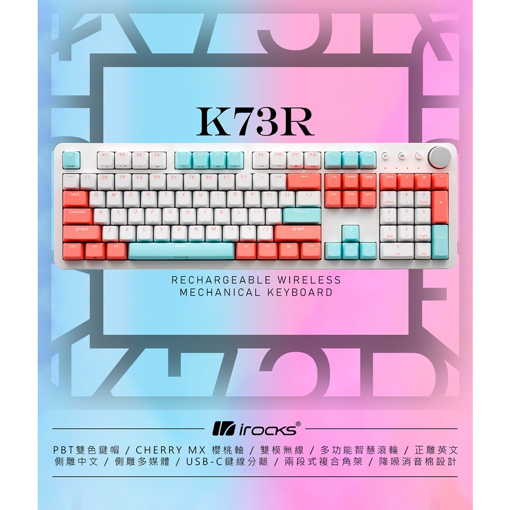irocks K73R PBT 薄荷蜜桃 無線機械式鍵盤-Cherry軸 (K73系列)