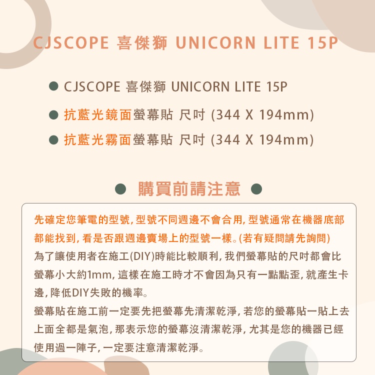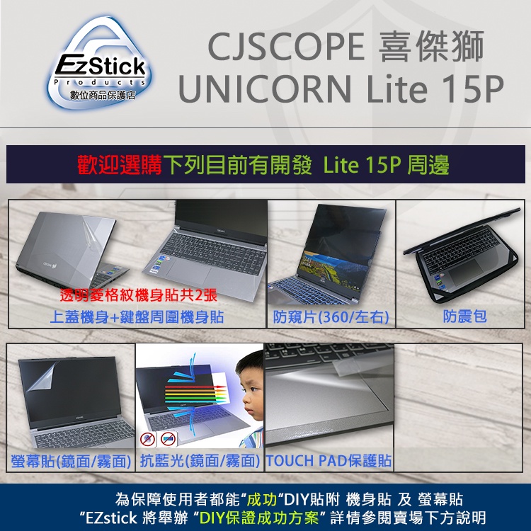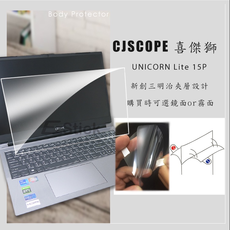 【Ezstick】CJSCOPE 喜傑獅 UNICORN Lite 15P 防藍光螢幕貼|鏡面/霧面可選|筆電螢幕保護貼