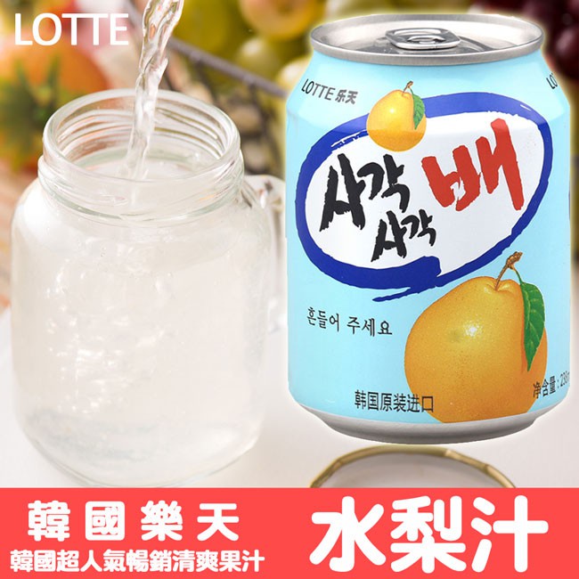 韓國 LOTTE 樂天 水梨汁 葡萄汁 橘子汁 蘋果汁 草莓汁 238ml【懂吃】果汁 夏天飲品 韓國果汁