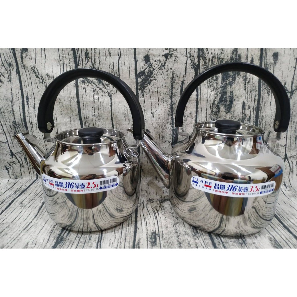 臺灣製造 CLARE 晶鑽316不銹鋼笛音壺2.5L 3.5L 4.5L 6L笛音茶壺 壺身一體成型