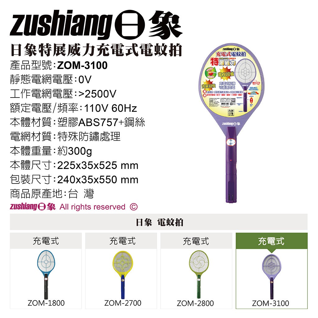 【日象】特展威力電蚊拍(充電式) ZOM-3100 捕蚊拍 超大拍面 捕蚊神器 物理滅蚊