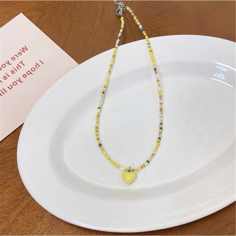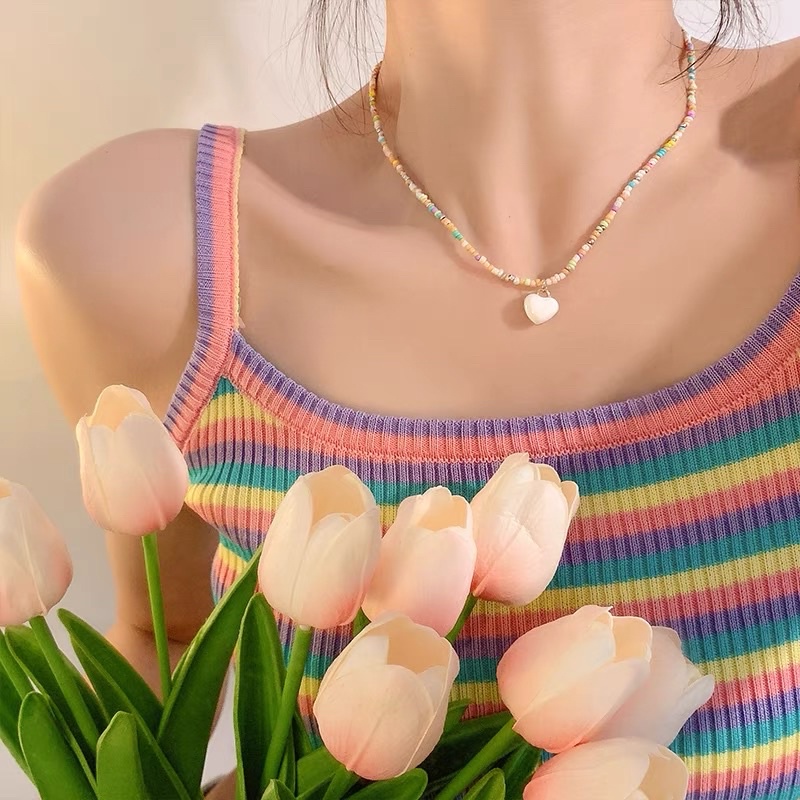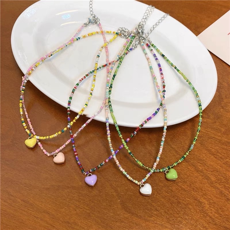 X230👉台灣現貨👉奶呼呼的小愛心~多巴胺彩色串珠愛心吊墜項鍊女甜酷風氣質網紅百搭鎖骨鏈多巴安配飾X230