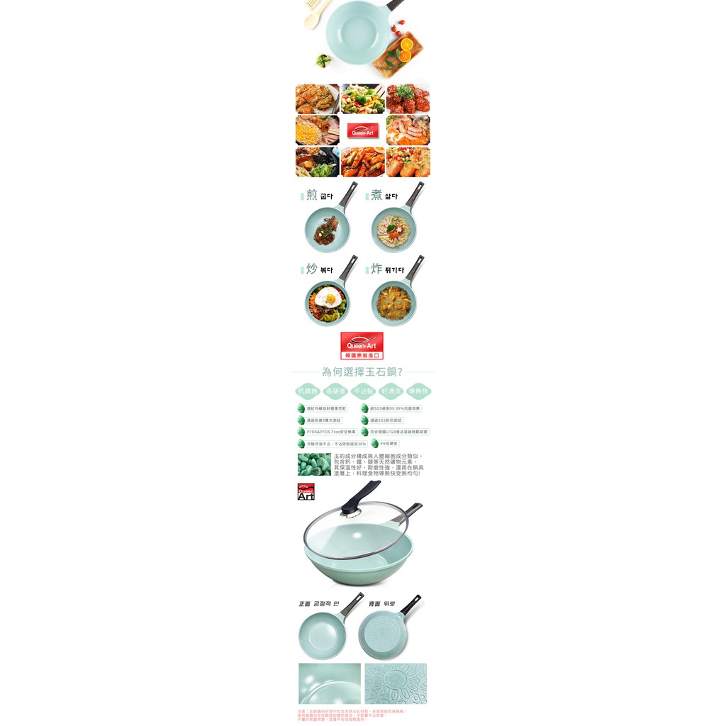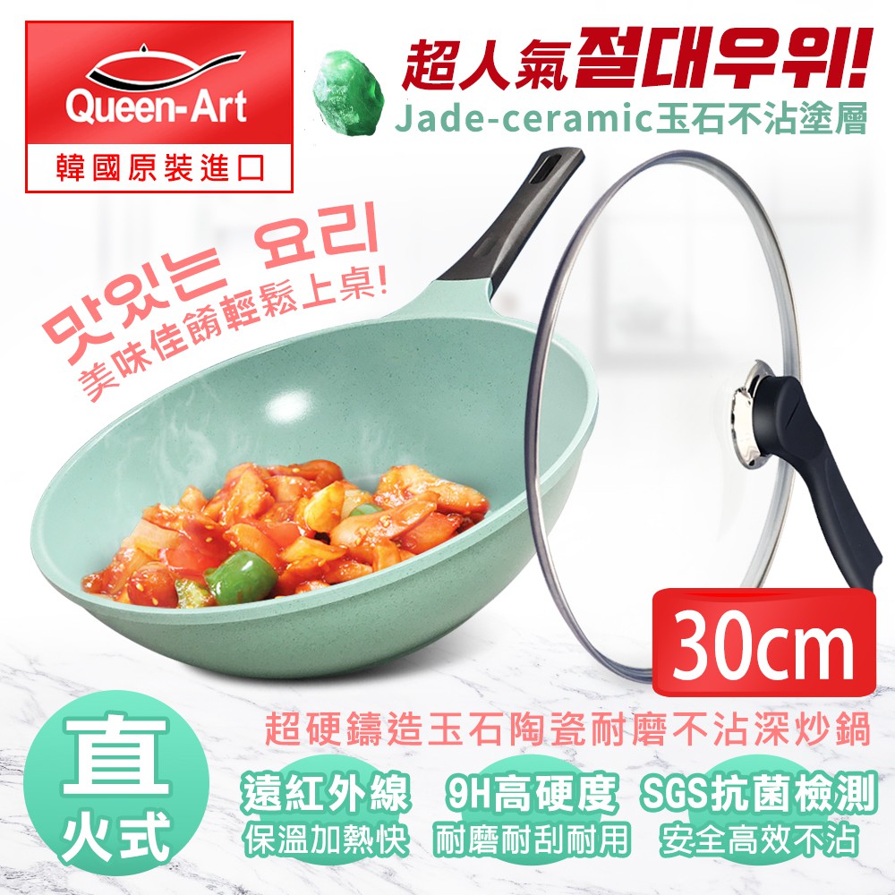 韓國Queen Art超硬鑄造玉石陶瓷耐磨不沾30CM深炒鍋