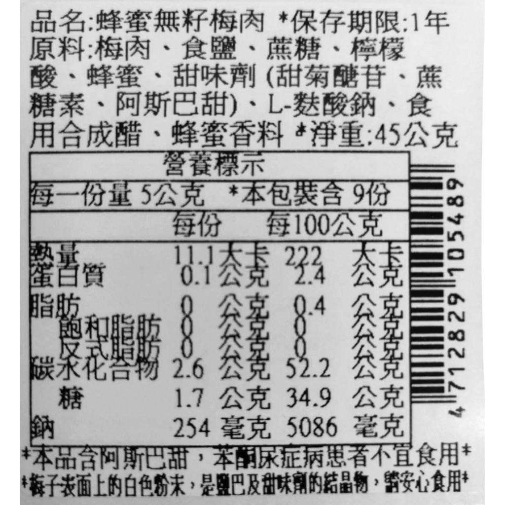 【有顆梅】蜂蜜無籽梅肉(45公克/包) 無籽梅肉/梅乾/梅干/梅片/果乾/零食/富田/蜜餞)