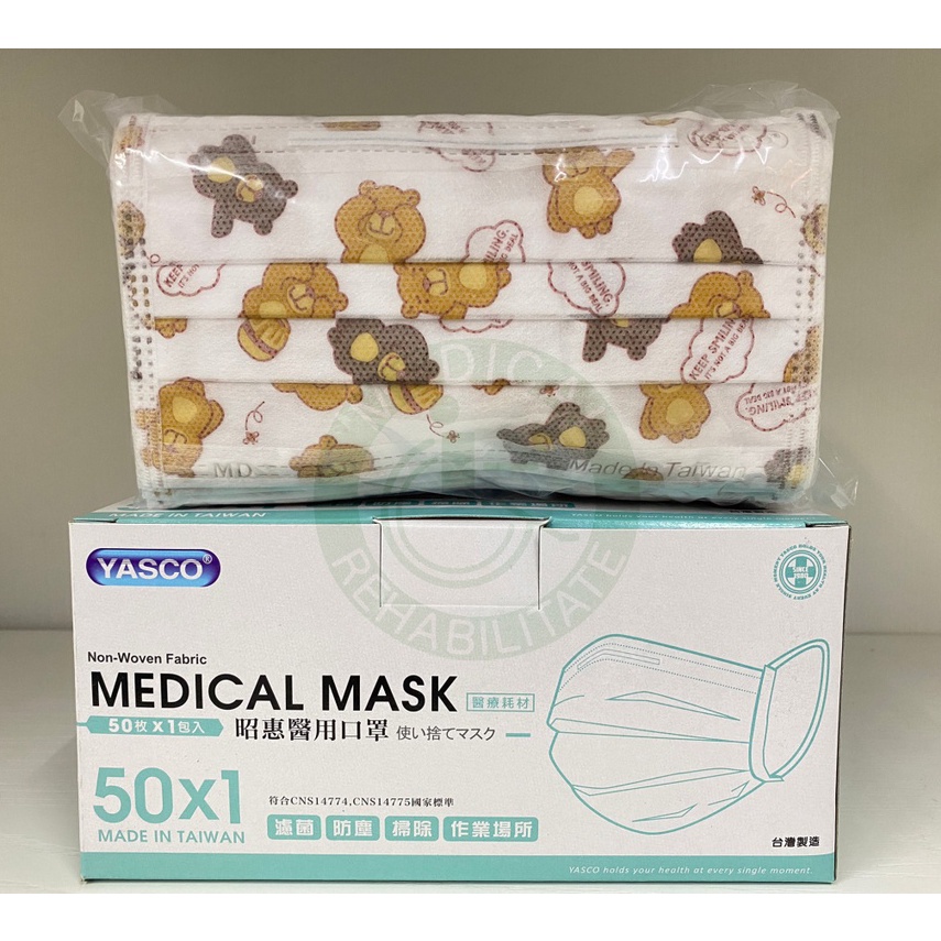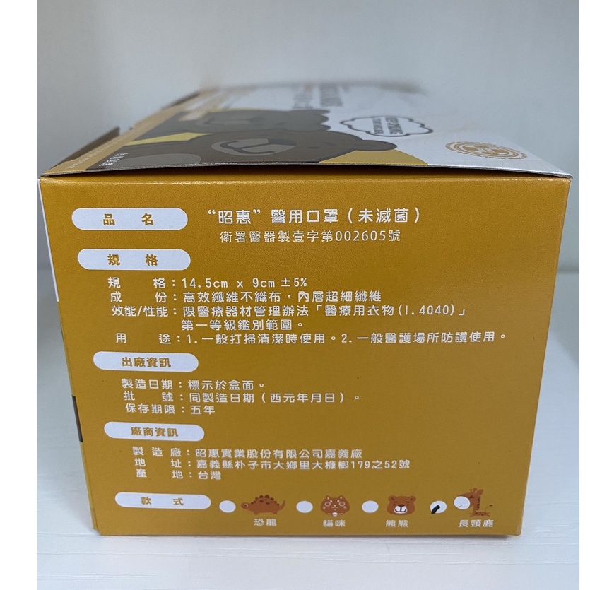 YASCO 昭惠 醫用口罩 成口罩 兒童口罩 黑色 紫色 橘色 恐龍口罩 長頸鹿 口罩(粗扁繩、圓繩)(50入/盒)