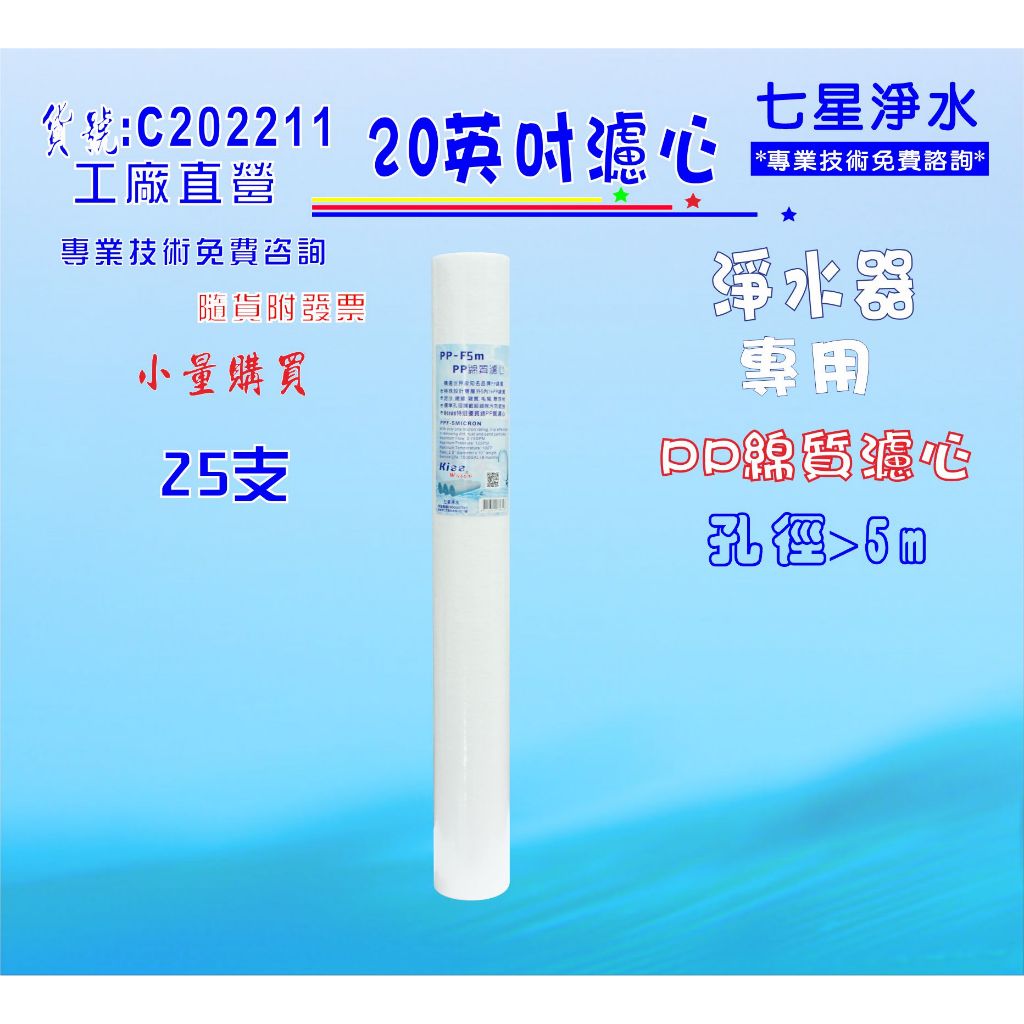 20"PP5m棉質25支免運費!淨水器濾心.濾水器過濾器RO純水機.飲水機貨號: C202211【七星淨水】