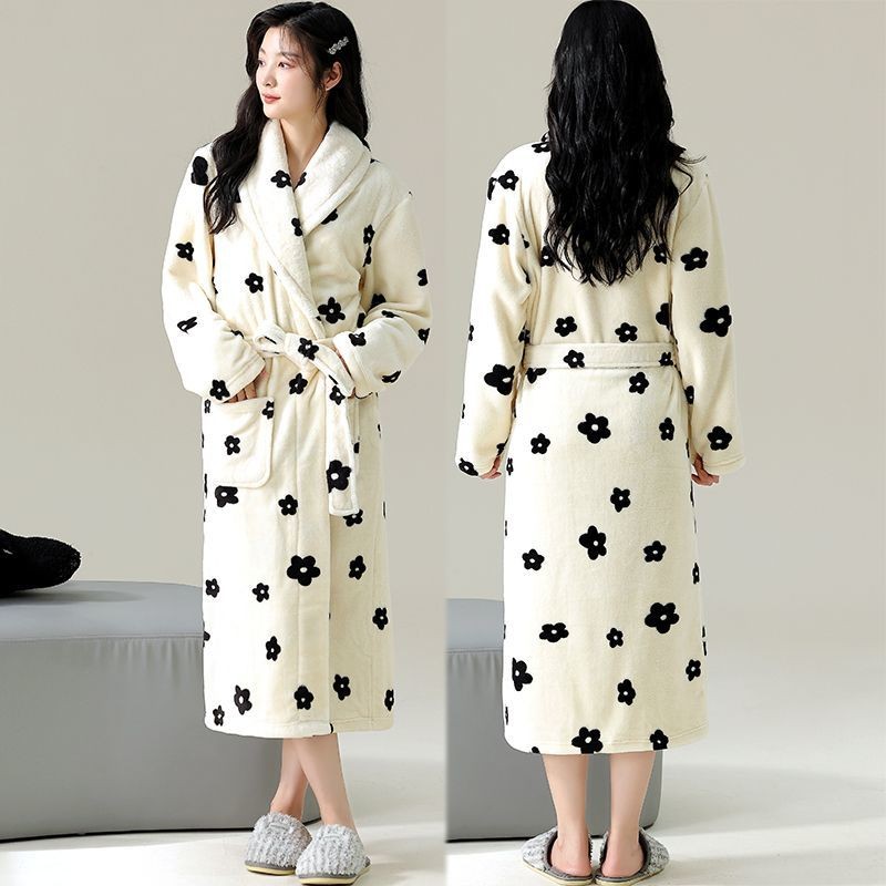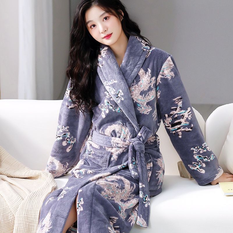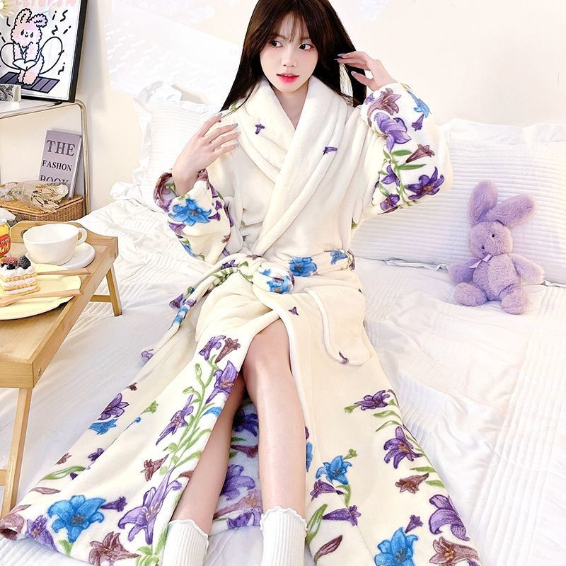 2025新款🌈睡袍女秋冬季加厚珊瑚絨長袍浴袍保暖春秋法蘭絨新款睡衣外穿長袖 YUCO