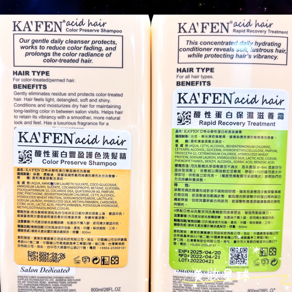 24小時寄出 台灣公司貨 卡氛KAFEN 亞希朵 洗護系列800ml (保濕/控油/鎖色/滋養) 洗髮精 滋養霜