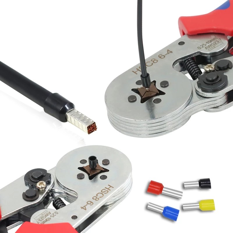 24H出貨 限時下殺 歐式壓接鉗端子 管型針型端頭端子鉗 壓線鉗 冷壓鉗 專業電工工具 冷壓卷邊鉗 HSC8 6-4