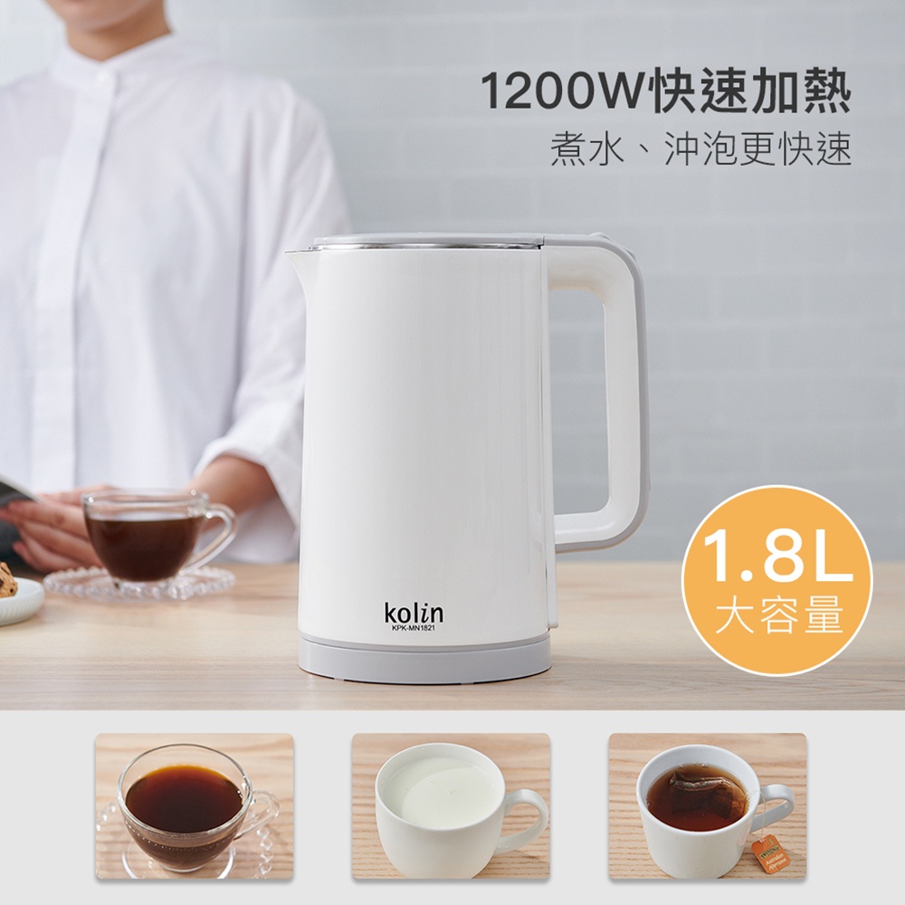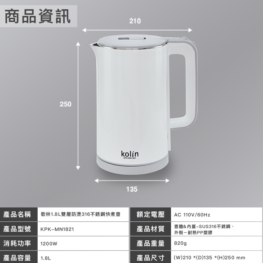 3樂直購 Kolin 歌林 防燙 316 1.8L 不銹鋼 快煮壺 KPK-MN1821