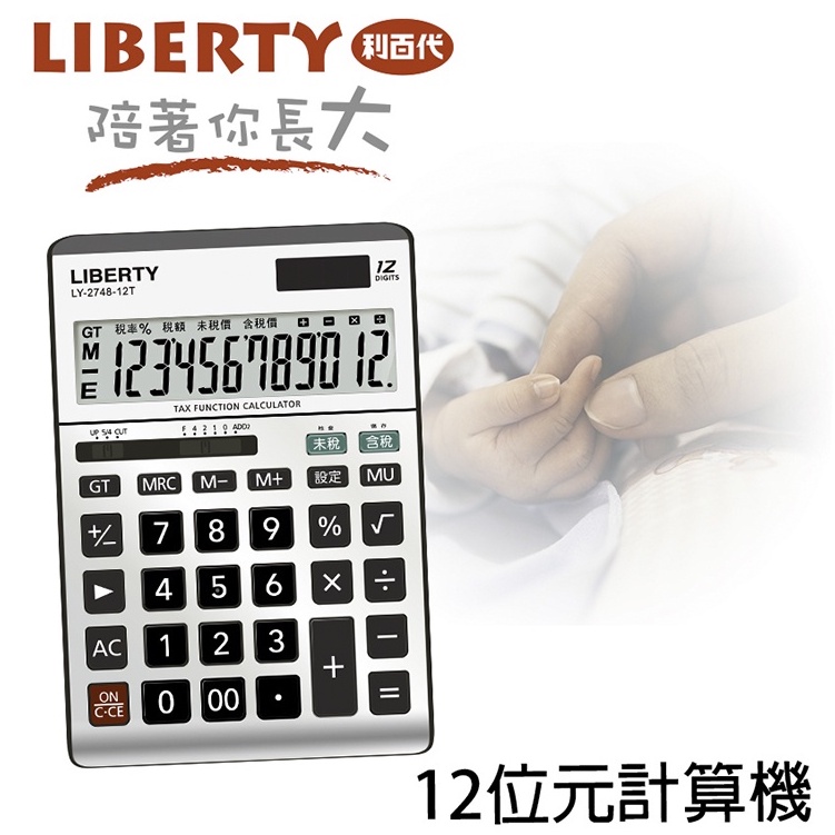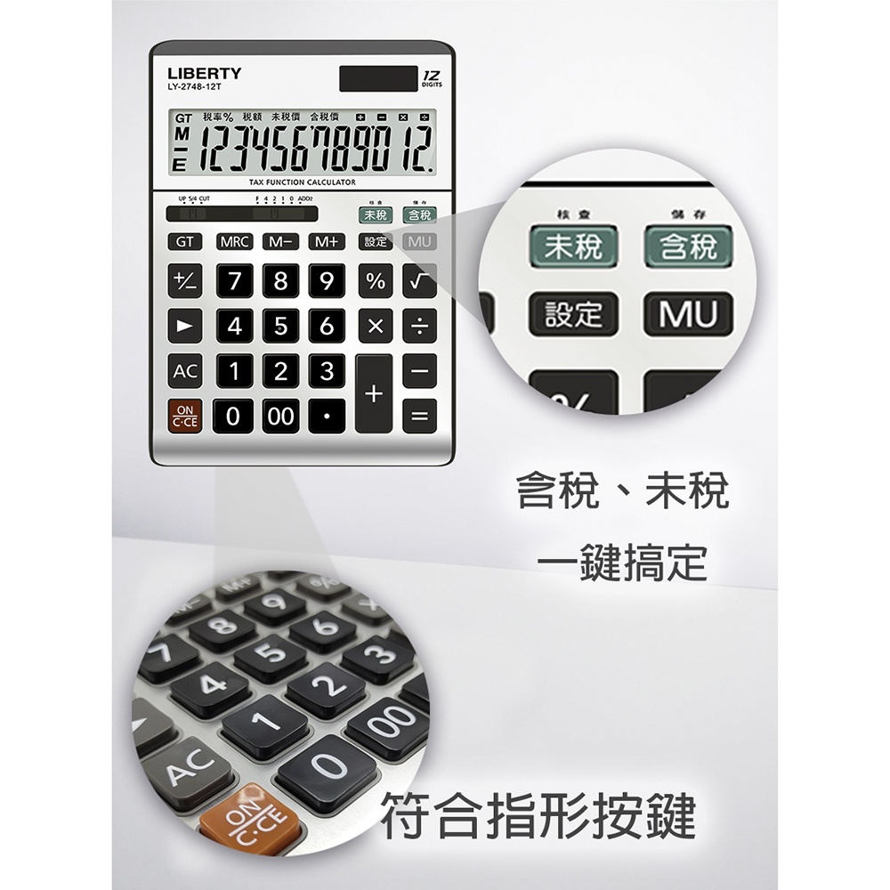 3樂直購 LIBERTY 利百代 12位元 計算機 太陽能 電池 兩用 稅率 大螢幕 LY-2748CA