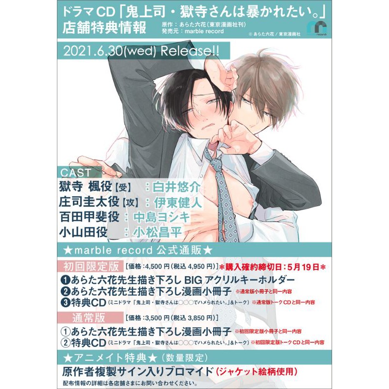 (預購)ドラマCD「鬼上司・獄寺さんは暴かれたい。」あらた六花東京漫画社白井悠介伊東健人中島ヨシキ鬼上司獄寺先生想被曝光