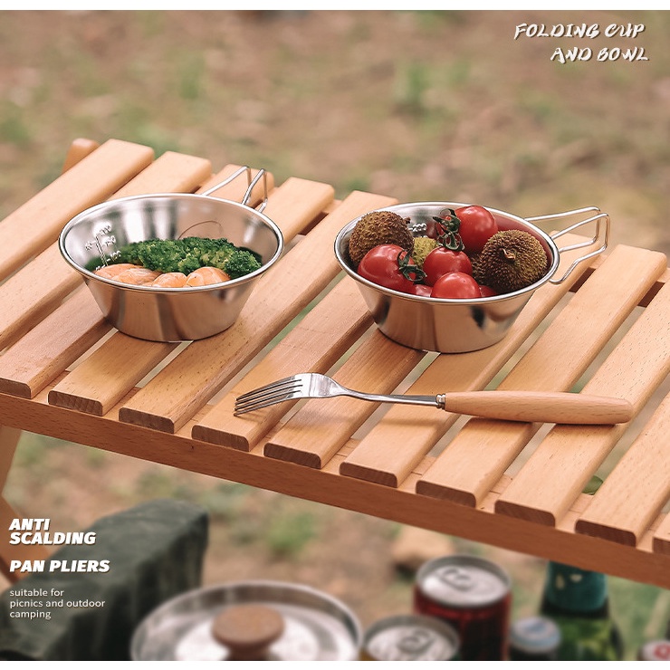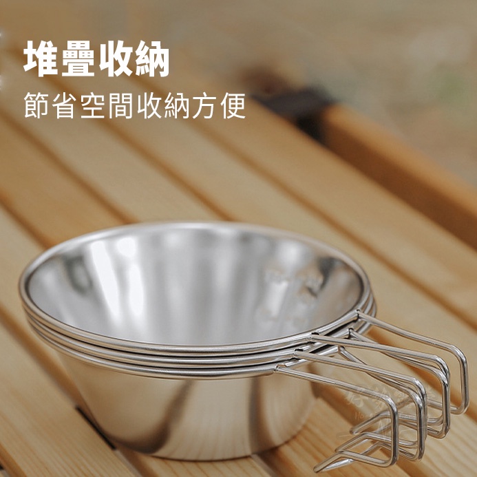 304不銹鋼杯碗/雪拉碗 310ml 【好勢露營】不鏽鋼碗 摺疊碗野營餐具戶外碗雪拉杯 可直火 提把碗 登山