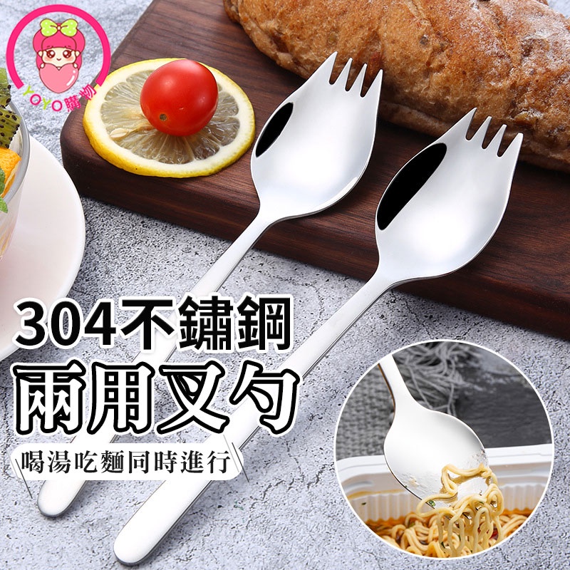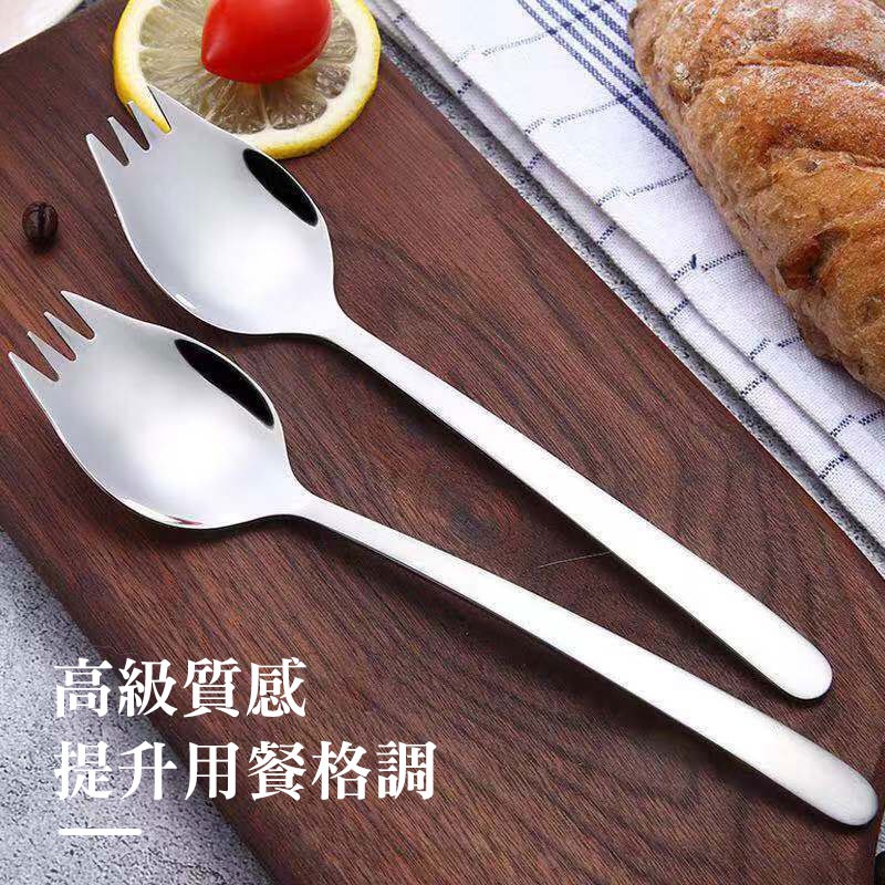 304不鏽鋼湯匙叉勺 不銹鋼叉匙 叉子 湯匙 不鏽鋼湯匙 不鏽鋼叉子 兩用點心叉匙 水果叉子 沙拉叉勺【00737】