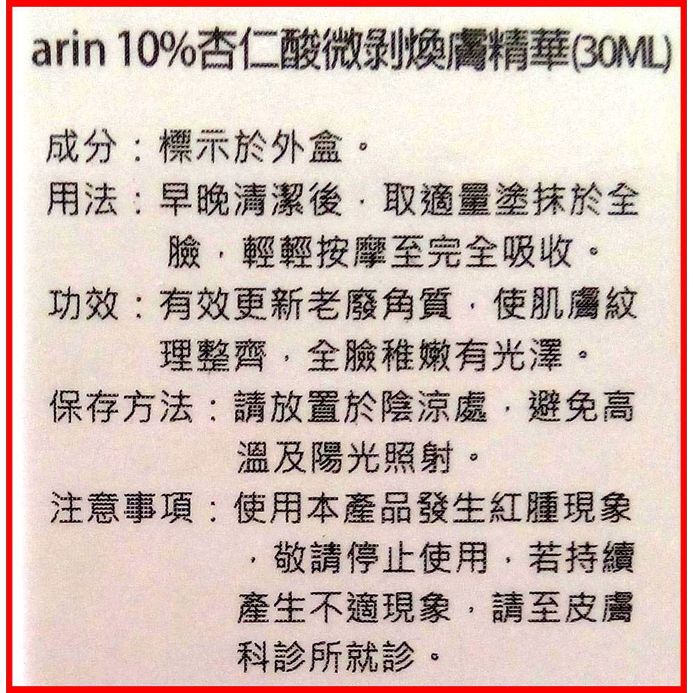 30ml/罐.arin氧潤10%.arin.氧潤.10%.杏仁酸微剝煥膚精華.有效日期:2025.06