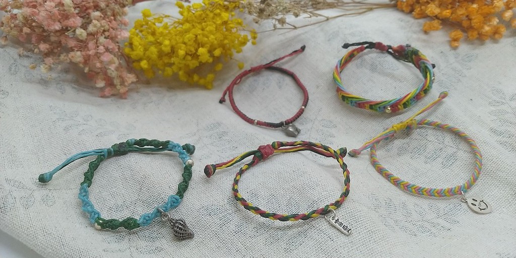 手編蠟繩幸運繩手環/鋁線耳環手作創作-一線相伴
