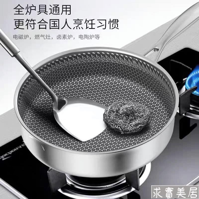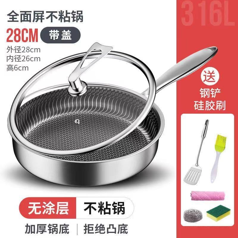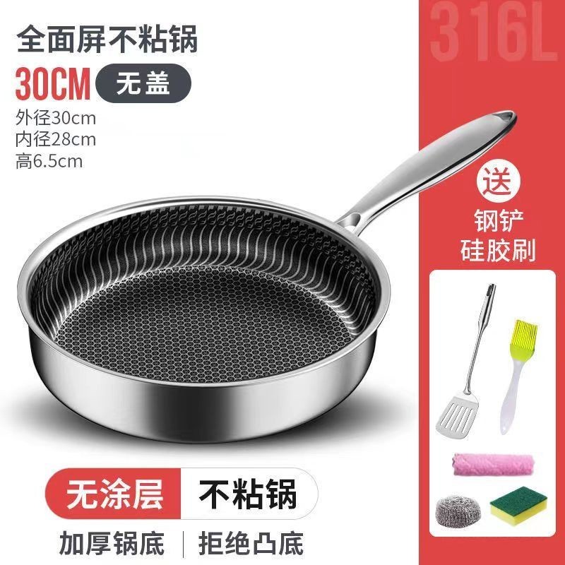 316L不銹鋼平底鍋不粘鍋煎鍋炒無塗層電磁爐燃氣通用
