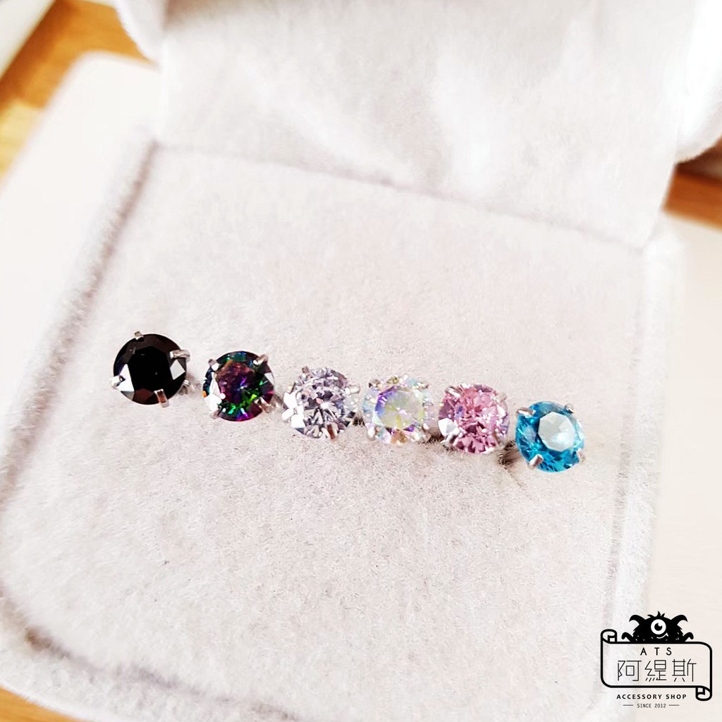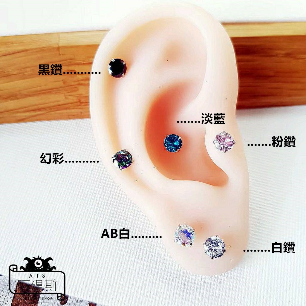 316L醫療鋼 四爪細針單鑲鑽 細針鎖式耳環 耳骨 養耳棒 單支價 阿緹斯 A79 1細針款