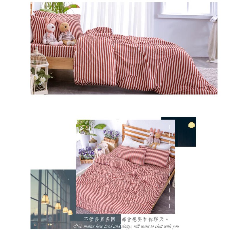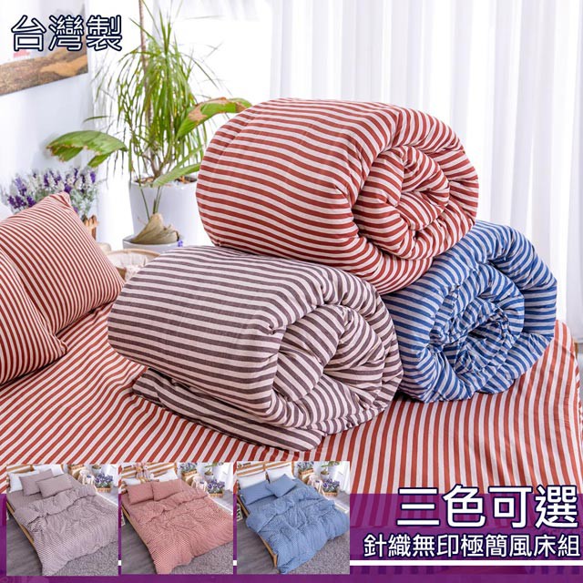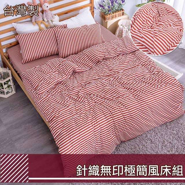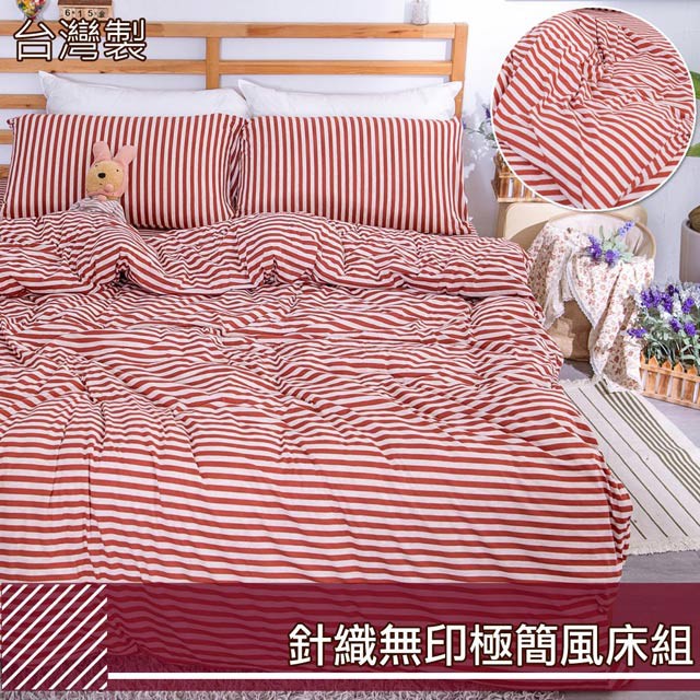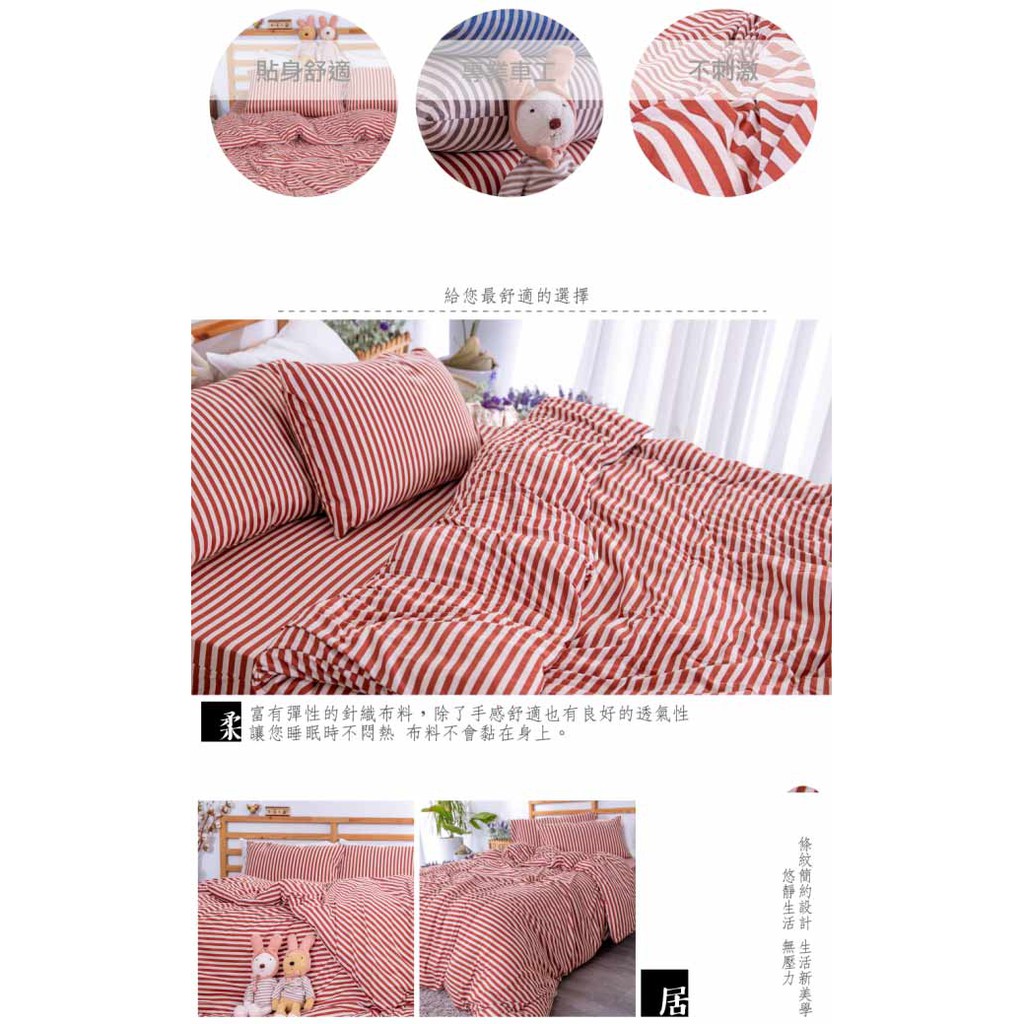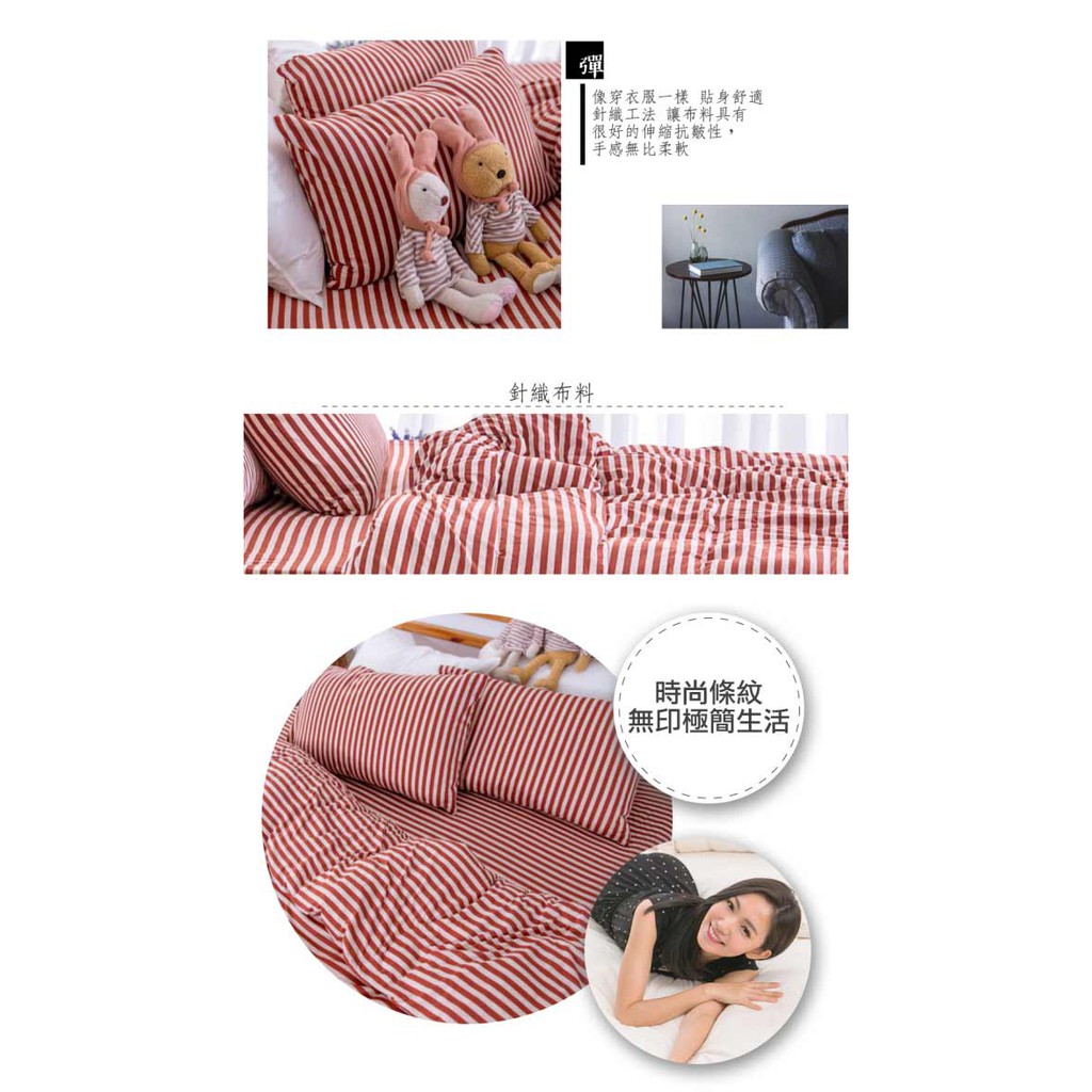 【eyah】MIT針織條紋風床寢 床包 枕頭套 組合 --紅