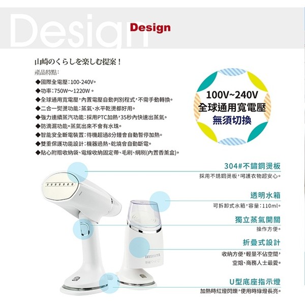 YAMASAKI 山崎 寬電壓可折疊掛燙機/國際電壓 SK-130AB