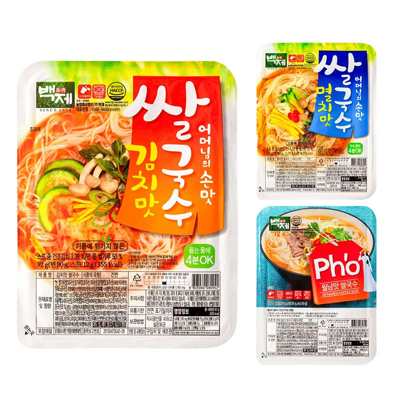 韓國百濟 米麵線 越南河粉 海鮮味 泡菜味 92g【零食圈】即時麵線 泡麵 團購