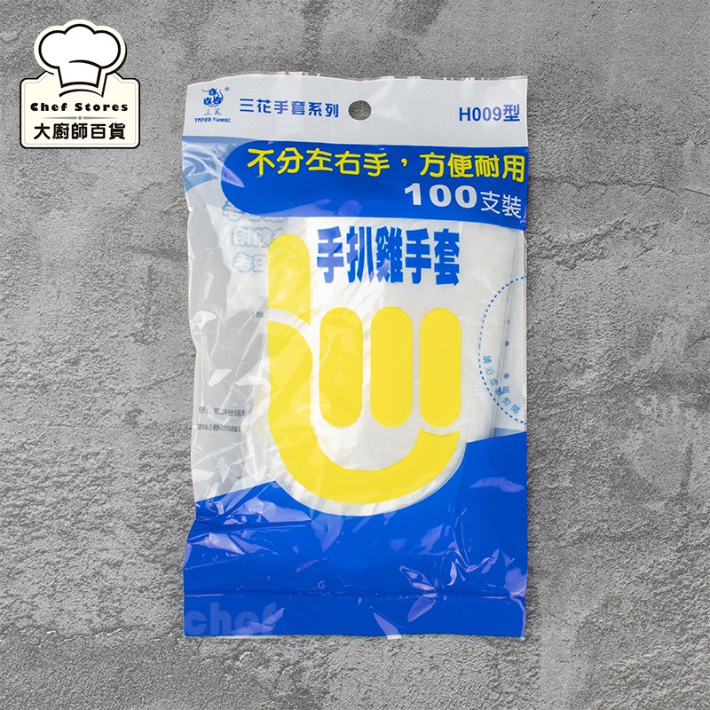 三花手扒雞手套塑膠手套100入衛生手套拋棄式手套H009型