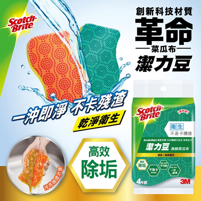 3M SDTU-2M 潔力豆海綿菜瓜布(爐具/鍋具專用) 2片裝 / SDOU-2M 潔力豆海綿菜瓜布(餐具/不沾鍋專用