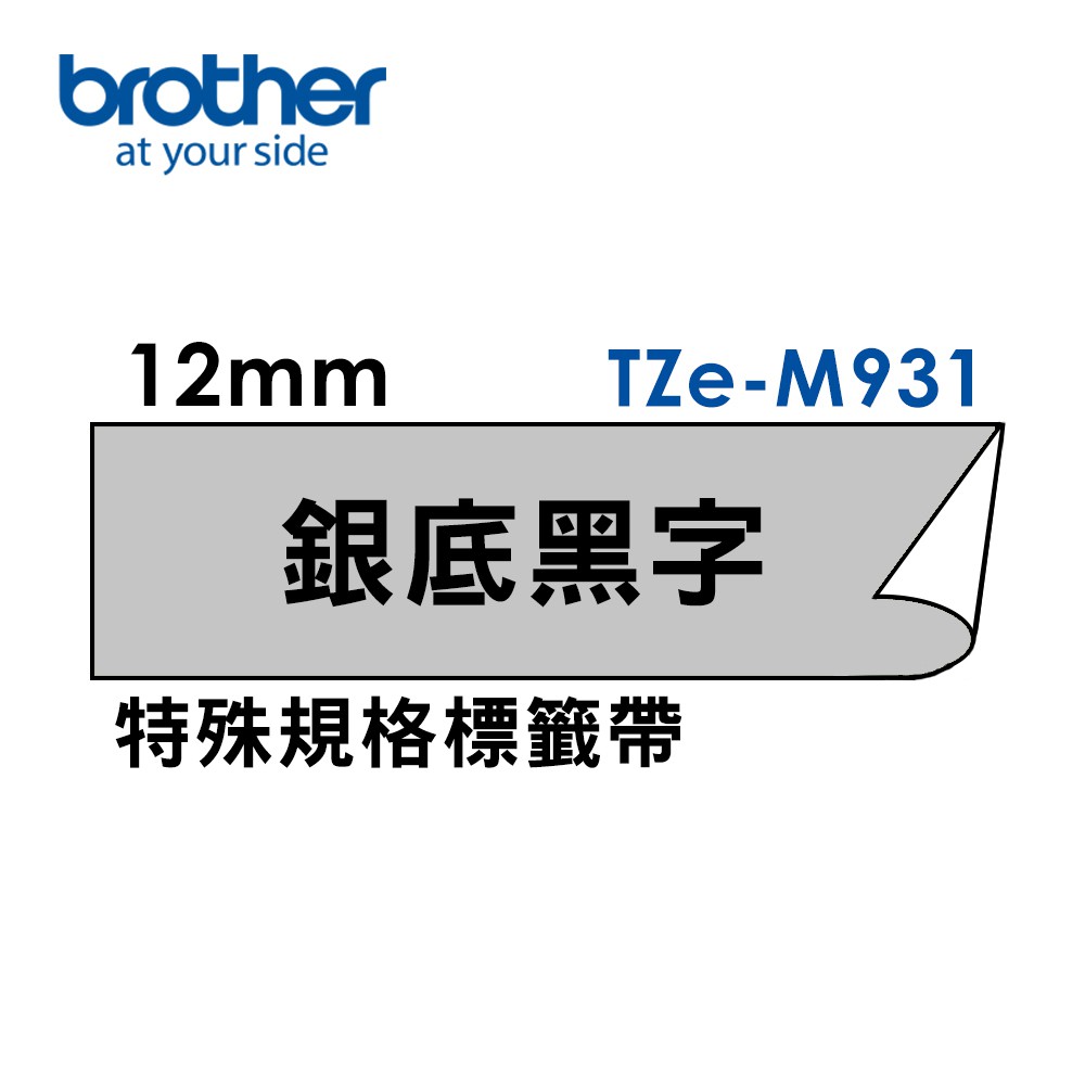 Brother TZe-M931 特殊規格護貝標籤帶 (12mm 銀底黑字) 廠商直送