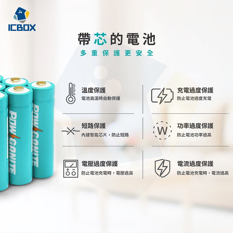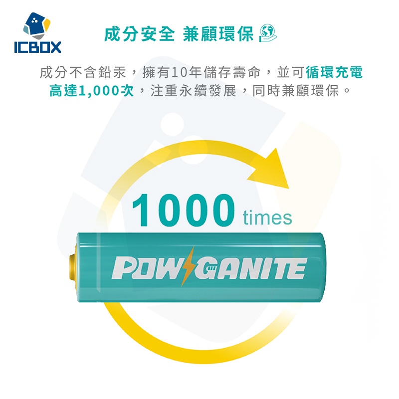 【ICBOX】Brook Livin POWGANITE 耐能鋰離子充電電池組 兩年保固 智能控溫 3號電池 A583