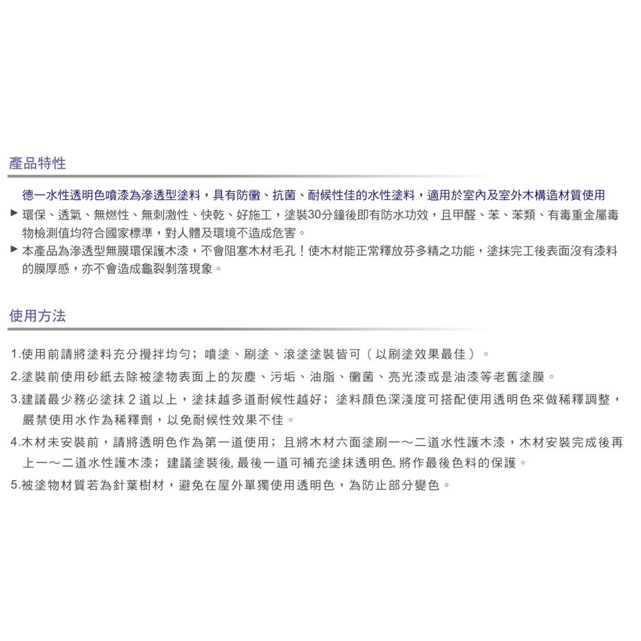 [新竹銓合油漆] 德一 水性護木漆 室內外專用 綠建材 南方松 木屋用 防霉 抗菌
