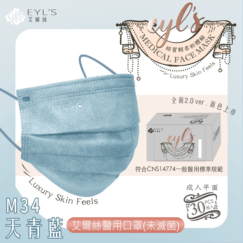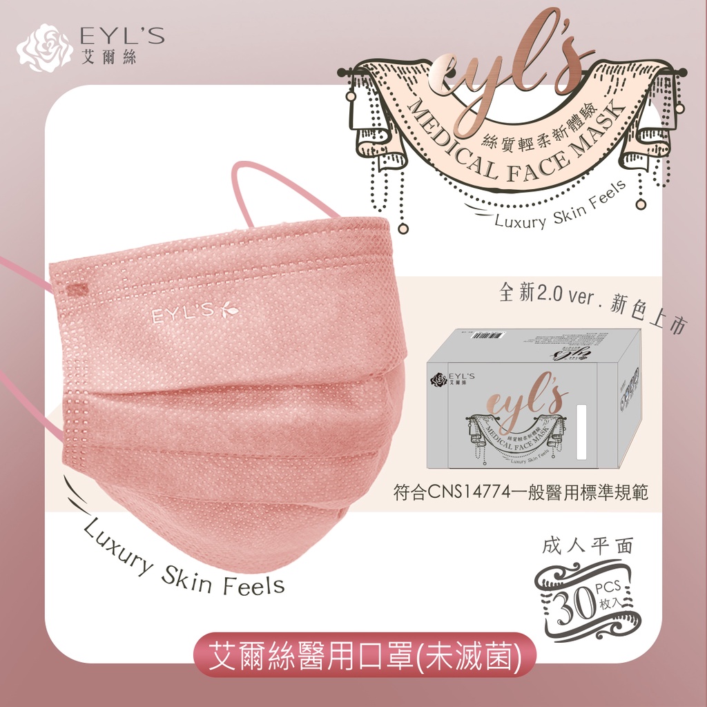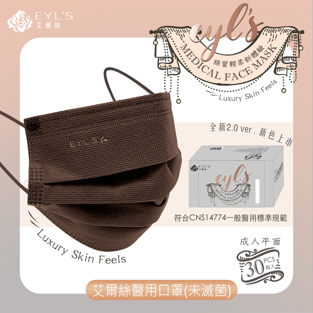 艾爾絲醫療平面口罩30入滿版 成人醫用口罩 醫療口罩 台灣製口罩 奶茶色口罩 莫蘭迪色口罩 特殊色口罩
