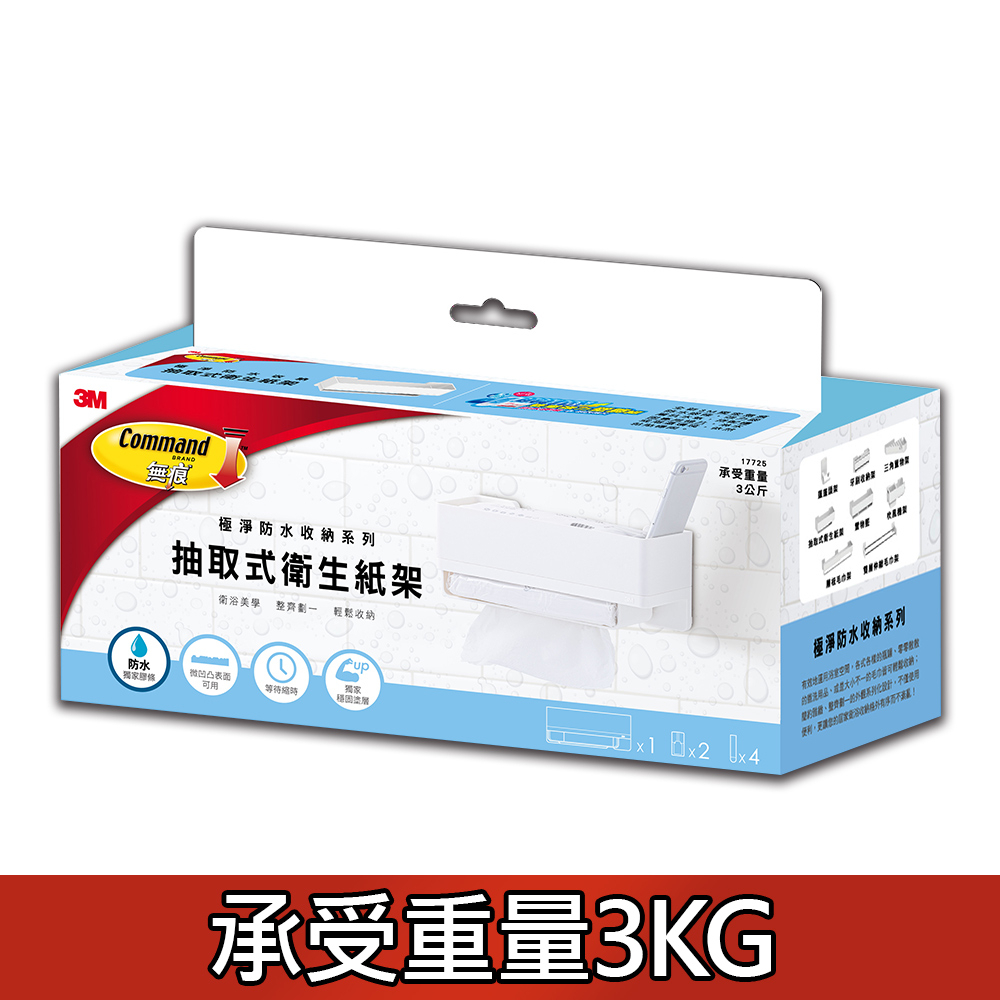 3M無痕極淨防水收納系列/抽取式衛生紙架/17725|史泰博