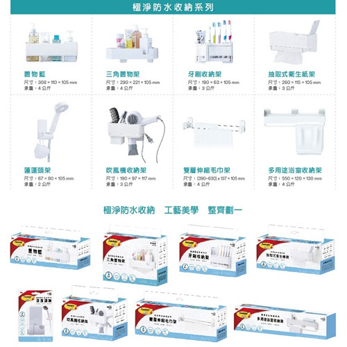 3M百利 無痕極淨防水收納系列-置物籃 免釘免鑽【愛買】