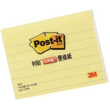 3M 利貼 可再貼便條紙 657L ( 橫格 ) 便利貼 可再貼 便條紙 100張/本