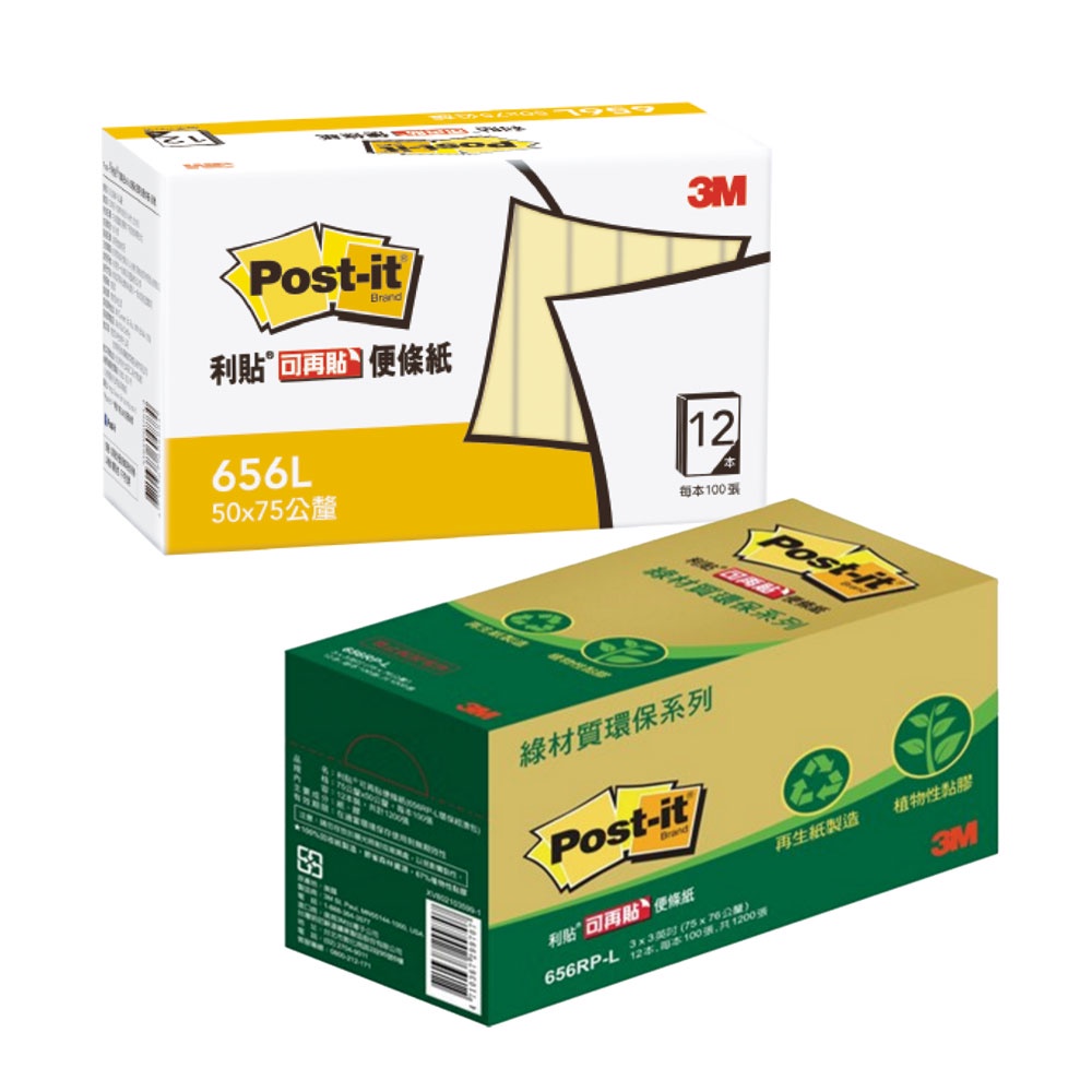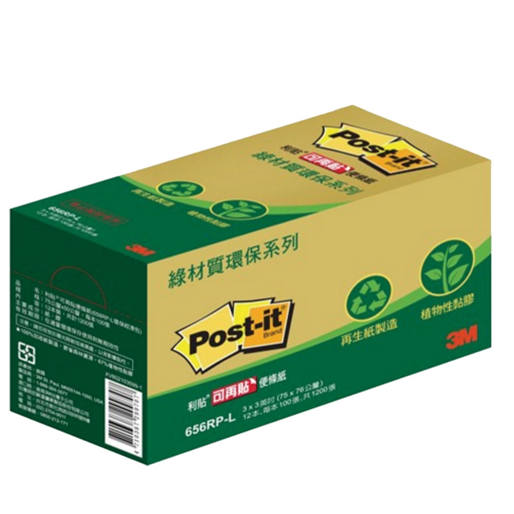 3M 利貼3x2便條紙環保經濟包 3x2綠材質環保便條紙經濟包 12本/盒 可再貼 重複貼 便條紙 留言紙 MEMO紙