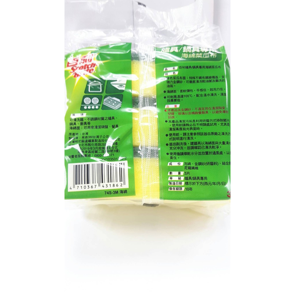 3M 百利爐具/鍋具專用海綿菜瓜布3片74S-3M 含稅附發票