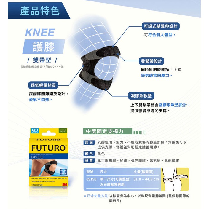 3M 護多樂 雙帶型護膝 09195 (黑色) 3M FUTURO 護具 運動護具 透氣不悶熱 可調式 公司貨