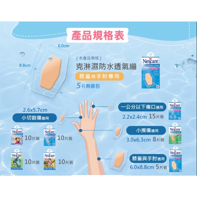 3M 克淋濕防水透氣繃 ( 膝蓋與手肘 / 小擦傷 / 小切割 / 1公分以下傷口 ) 【久億藥局】