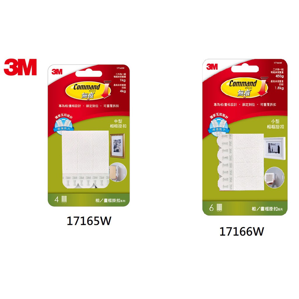 3M 17165W 中型無痕白色畫框掛扣(4入) / 17166W 小型無痕白色畫框掛扣(6入)