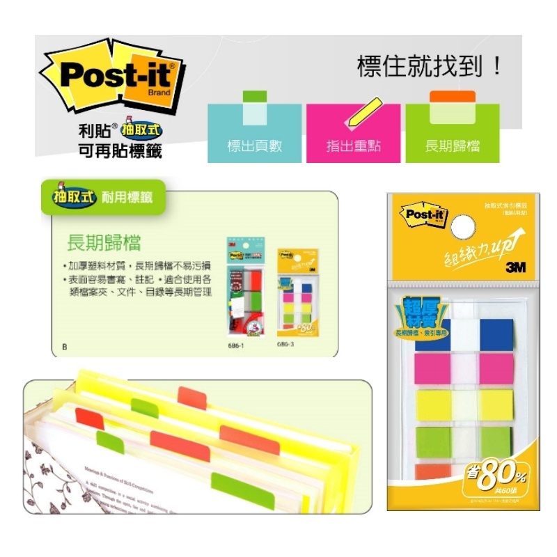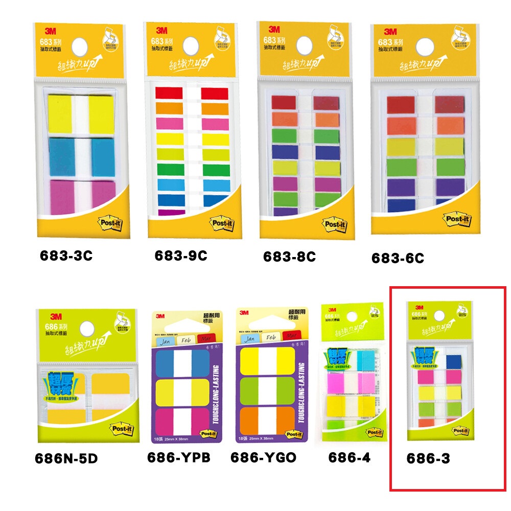 3M 686-3 抽取式 超厚材質 索引指示標籤(五色)