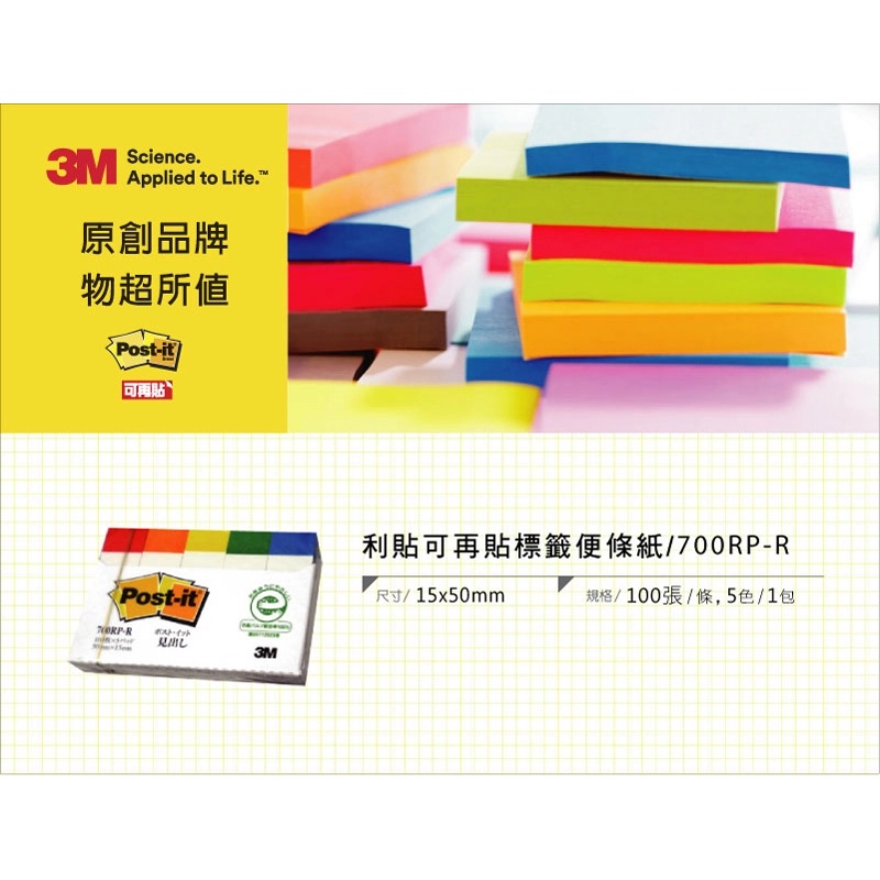 【8H包裝】3M 700CL-1可再貼 指示標籤紙5色 /可再貼標籤便條紙-700RP-R 5色/ 3M 550RL